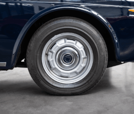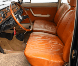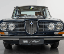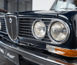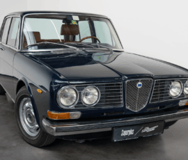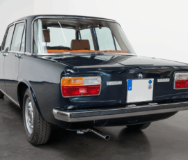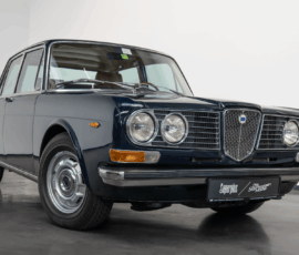 Die Außenfarbe „Bleu Lancia“ unterstreicht den distinguierten Auftritt dieser Limousine – ein tiefes, edles Blau, das perfekt mit dem braunen Lederinterieur harmoniert und die zurückhaltende Eleganz des Fahrzeugs stilvoll betont.