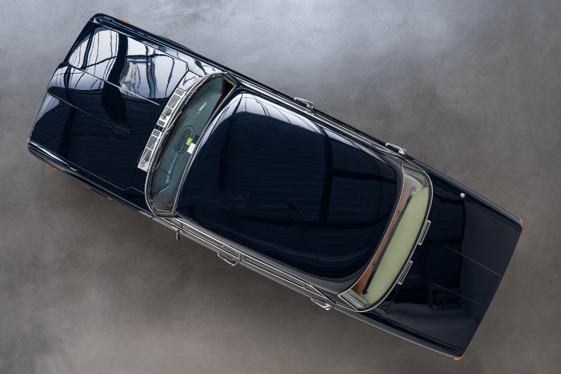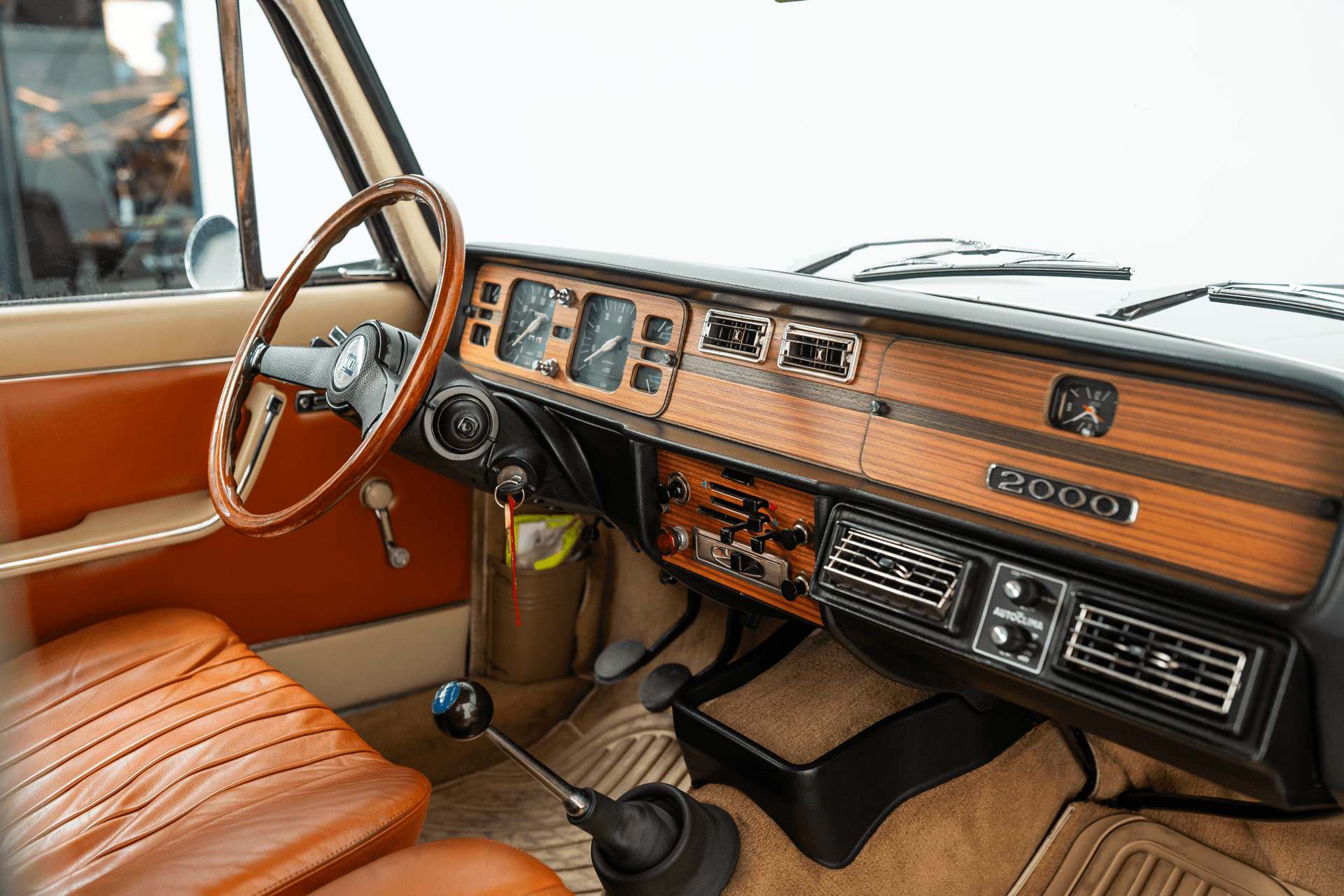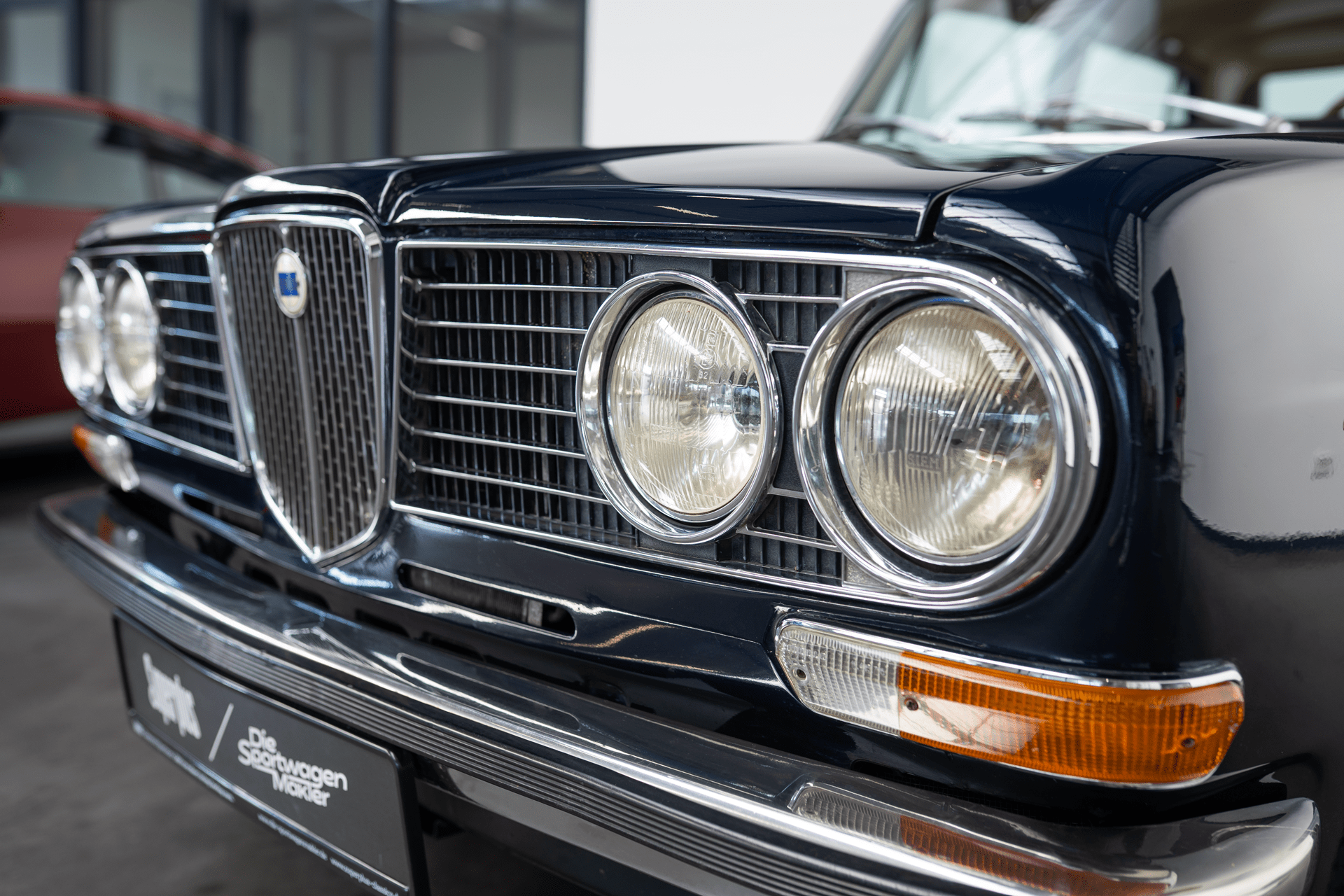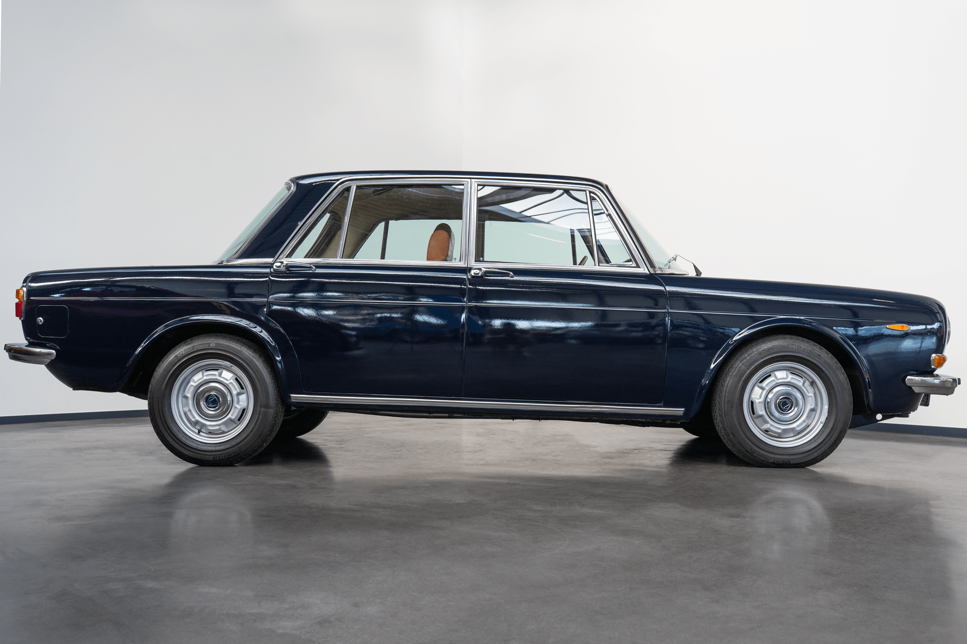 Die Außenfarbe „Bleu Lancia“ unterstreicht den distinguierten Auftritt dieser Limousine – ein tiefes, edles Blau, das perfekt mit dem braunen Lederinterieur harmoniert und die zurückhaltende Eleganz des Fahrzeugs stilvoll betont.