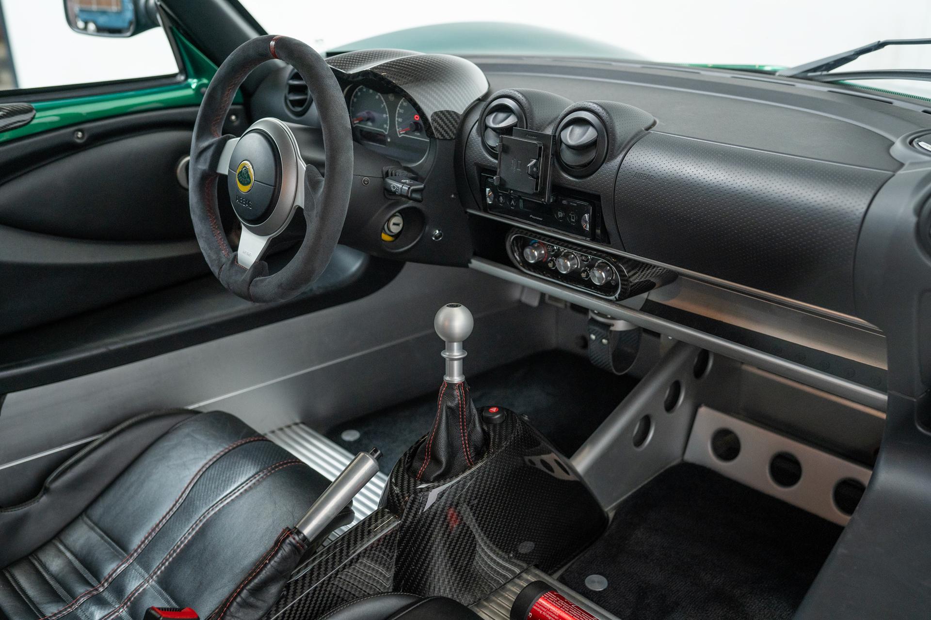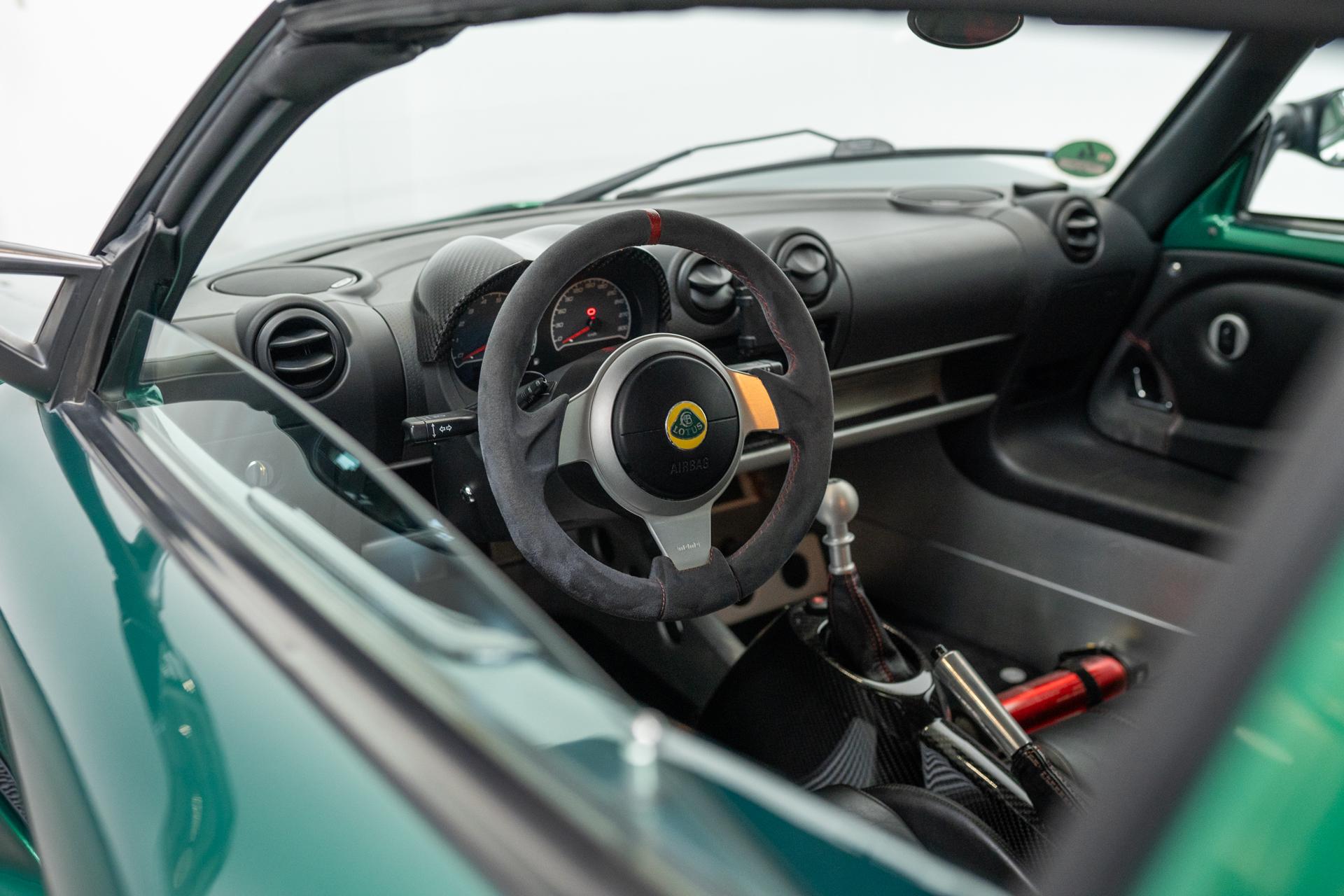 Diese motorsportgrüne Exige V6 S ist etwas ganz besonderes. Denn hier hat bereits Chris Harris sein Runden mit gedreht (Youtube: Chris Harris und Exige eingeben). Denn es handelt sich hier um eins von 9 Prototypfahrzeugen. Das wurde auch von Lotus zertifiziert. Die Exige befindet sich in einem sehr schönen klapperfreien Zustand. Alles ist straff und das Auto fährt sich wie es sich für einen Lotus gehört sehr gut! Der jetzige Besitzer hat vor knapp 500km einen Service machen lassen. auch die Felgen wurden in anthrazit neu lackiert. Zudem verfügt das Auto über ein Komotec Ex430 Kit und viele Carbonteile im Innen- und Motorraum. Von Sitzheizung bis Klima ist das Auto voll ausgestattet.