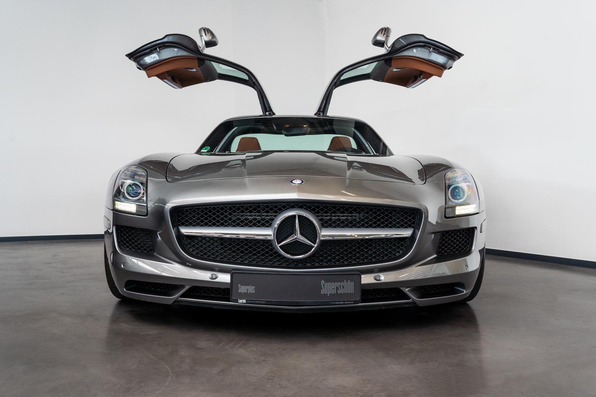 Der SLS zeigt sich in einem makellosen Zustand, ist lückenlos scheckheftgepflegt bei Mercedes Benz und bekommt bei Auslieferung einen frischen Service. Die Farbkombination aus Himalayas Grey Middle Metallic und sattelbraunem Leder ist traumhaft. Unser Modell eignet sich ob des Zustands, der Laufleitung und der lückenlosen Historie bestens als Wertanlage.
