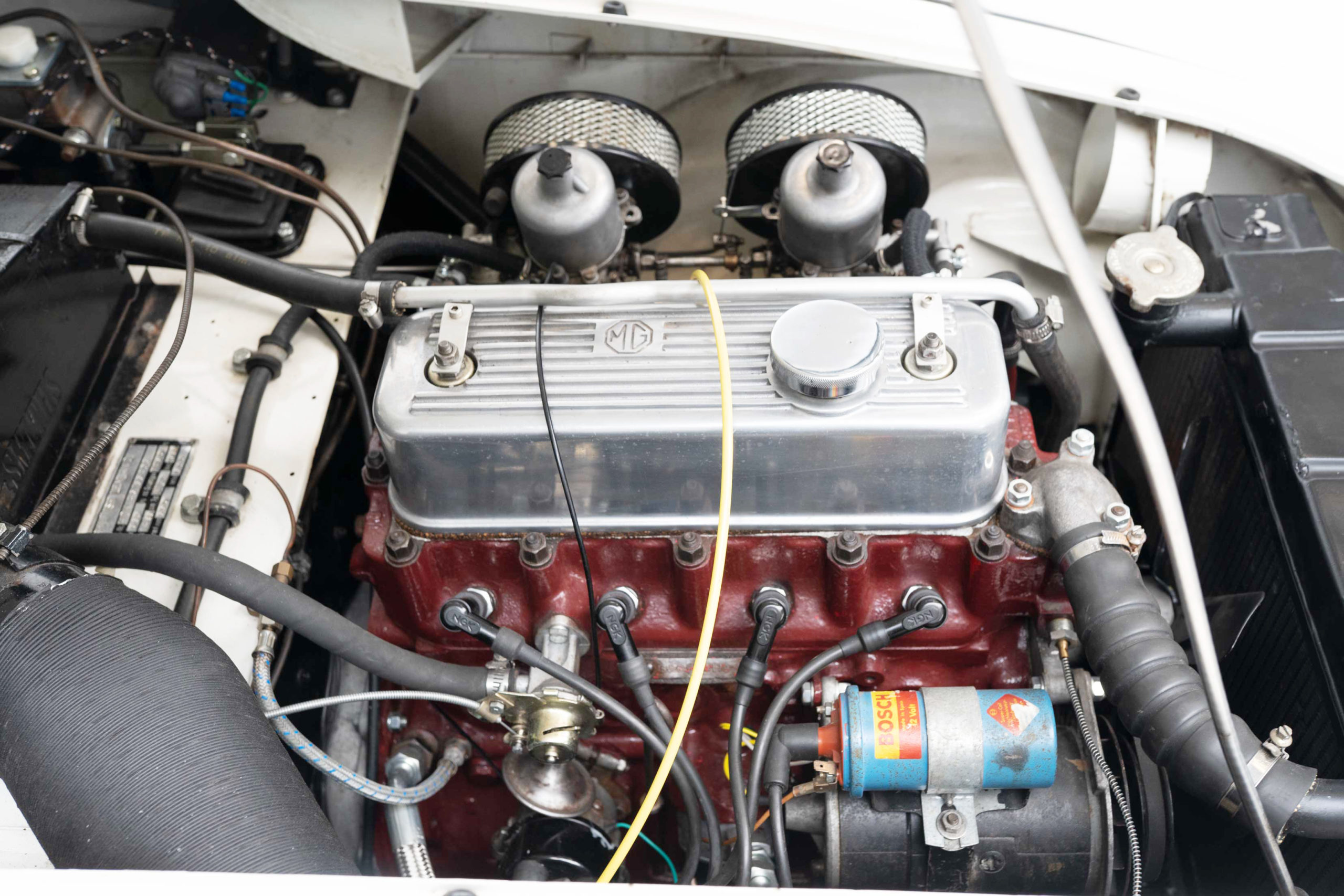Dieser wunderschöne MGA ist wirklich in einem traumhaften Zustand. Ein aktuelles Wertgutachten aus August 2021 attestiert dem MG eine 2+. Das Auto war die letzten 25 Jahre in Deutschland bei nur zwei Besitzern und besticht sowohl vom technischen, vom Lackbild und der Karosse und vor allem von unten (hier schaut er aus wie frisch aus dem Laden). Der Wagen wurde letztes Jahr mit einem 90PS starken MGB Motor ausgerüstet. Selbstverständlich inkl Ölkühler. Also keine thermischen Probleme. Der Motor ist selbstredend eingetragen. Bei uns hat das Fahrzeug noch einen komplett frischen originalen Kabelbaum bekommen (Kosten 1800€). In den letzten 12 Monaten wurden über 4000€ investiert um den MG in einen wirklich schönen Zustand zu bringen.