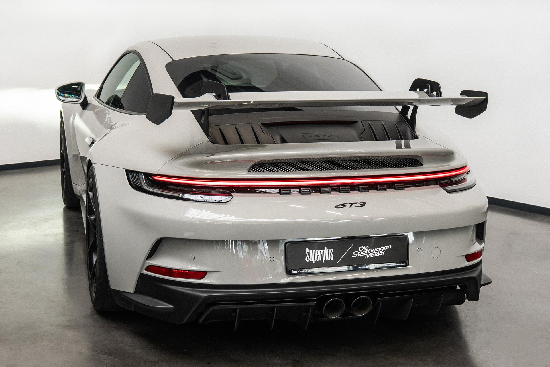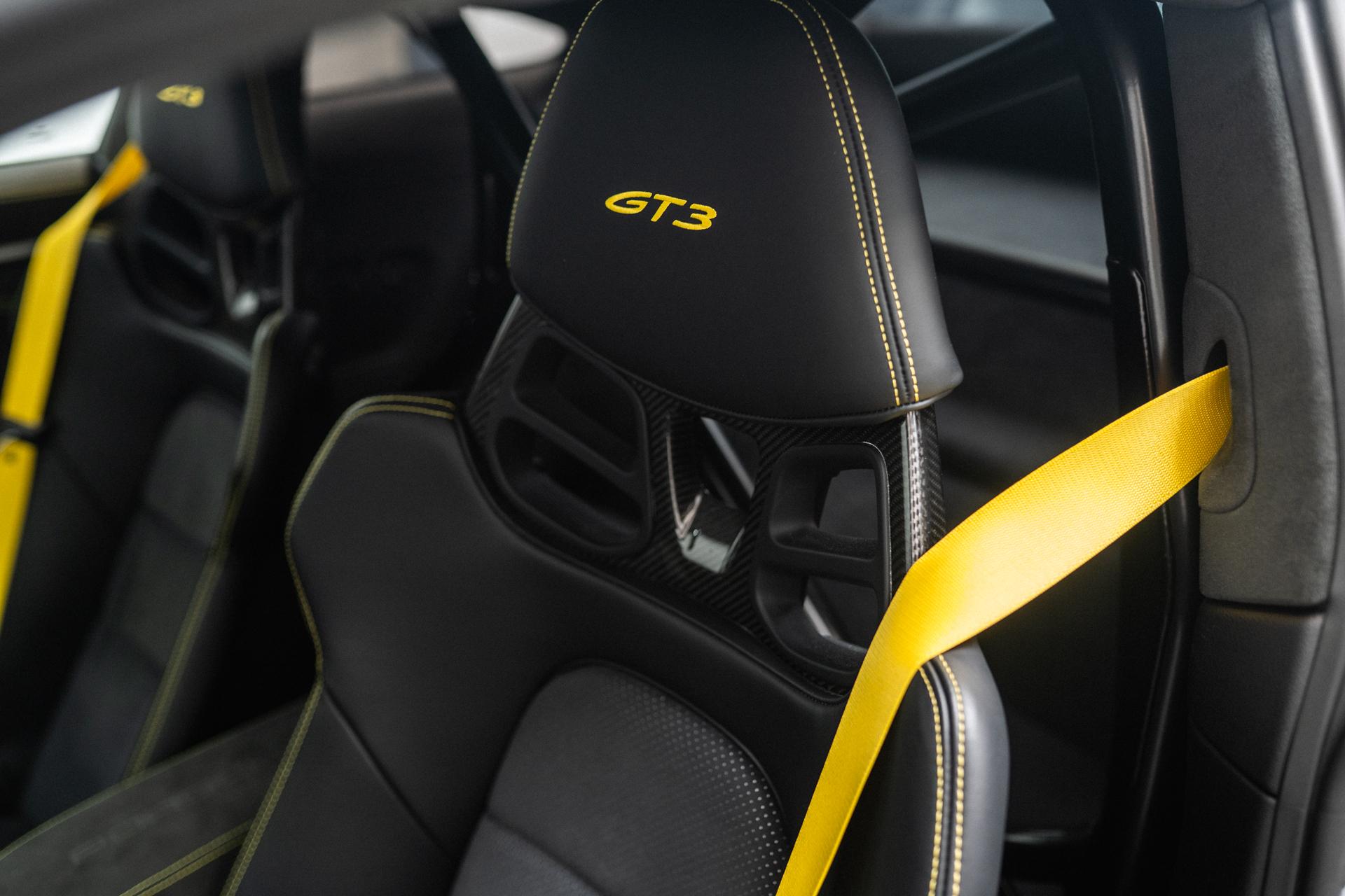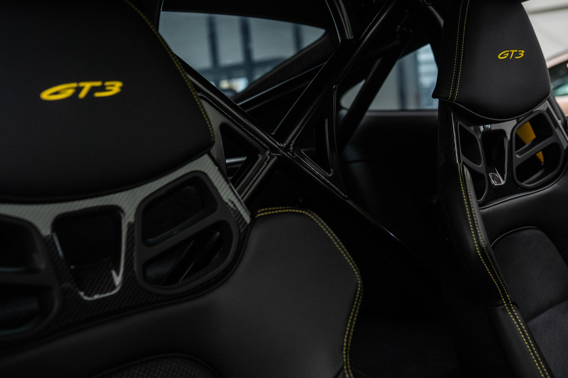 Airbag Fahrer-/Beifahrerseite, Antriebsart: Heckantrieb, Außenspiegel elektr. verstell- und heizbar, beide, Blinkleuchten LED, Connect Plus (Bluetooth, Apple CarPlay, WLAN, Vehicle-Tracking-System), Dachhimmel Race-Tex, Diebstahl-Warnanlage mit Innenraumüberwachung, Drehzahlmesser, Einschaltautomatik für Fahrlicht, Einstiegsblenden mit Modellbezeichnung (Aluminium), Fahrassistenz-System: Berganfahr-Assistent (Hill-Holder), Fensterzierleisten schwarz, Frontscheibe mit Bandfilter oben, Fußmatten, Getriebe 7-Gang – Sport Doppelkupplungsgetriebe (PDK), Getränkehalter, GT3 Cup, Heckflügelspoiler, Flügelstützen schwarz, Heckleuchten LED, Heckscheibe heizbar, Innenausstattung: Serienausstattung / Race-Tex, Ziernähte in Kontrastfarbe), Innenraumfilter: Aktivkohlefilter (Geruchsfilter), Interieur-Paket: Aluminium gebürstet, Karosserie: 2-türig, Keyless Drive, Kleiderhaken Sitzrückenlehne Leder, Klimaautomatik 2-Zonen, Kopf-Airbag-System (Curtain-Airbag), Kopf-Airbag-System Porsche Side Impact Protection System (POSIP), Kopf-Schulter-Airbag vorn (Thoraxbag), Leichtbau und Geräuschschutz Verglasung, Leichtbau-Batterie (Lithium-Ionen), Lenkrad (GT Sport / Race-Tex) mit Multifunktion und Schaltfunktion, LM-Felgen, Mobile Online Dienste Android Auto, Motor 4,0 Ltr. – 375 kW KAT, Otto-Partikelfilter (OPF), Parkbremse elektrisch, Porsche Communications Management (PCM) inkl. Online – Navigationsmodul, Porsche Torque Vectoring Plus (PTV Plus), Radioempfang digital (DAB+), Radnaben – Abdeckungen Porschewappen farbig, Reifendruck-Kontrollsystem, Schadstoffarm nach Abgasnorm Euro 6d, Schwellerabdeckung / -verkleidung, Sonnenblenden mit Spiegel (beleuchtet), Sport-Auspuffanlage, Endrohre schwarz, Sport-Fahrwerk (PASM) elektronisch gesteuert, Start/Stop-Anlage, Uni-Lackierung, Vehicle-Tracking-System (PVTS), Vierradlenkung