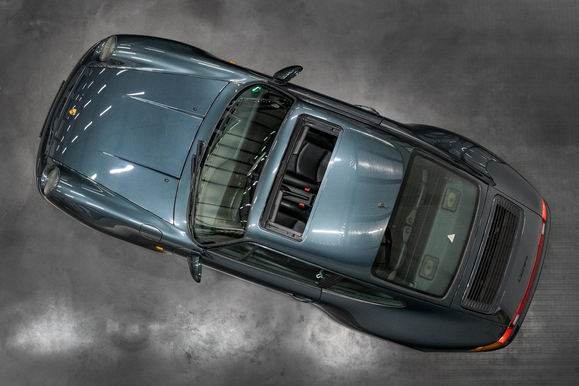We are in love! Aventuragrün ist unsere Farbe für 2023 😉 Diese graugrüne Mettaliclackierung macht unseren 993/2 zu etwas ganz besonderem. Und nicht nur optisch steht unser Elfer mit seinem schönen Lackbild, dem sehr gepflegten schwarzen Lederinnenraum mit elektrischen Sitzen klasse da. Technisch steht das scheckheftgepflegte Fahrzeug sehr gut da, auch der saubere Motorraum macht einen tollen Eindruck. Die Tiptronik schaltet sauber und macht im manuellen Modus sogar richtig Spaß. Ein hübscher 993 mit Schiebedach und Heckantrieb in einer edlen und außergewöhnlichen Farbe. Porscheherz was willst du mehr?!