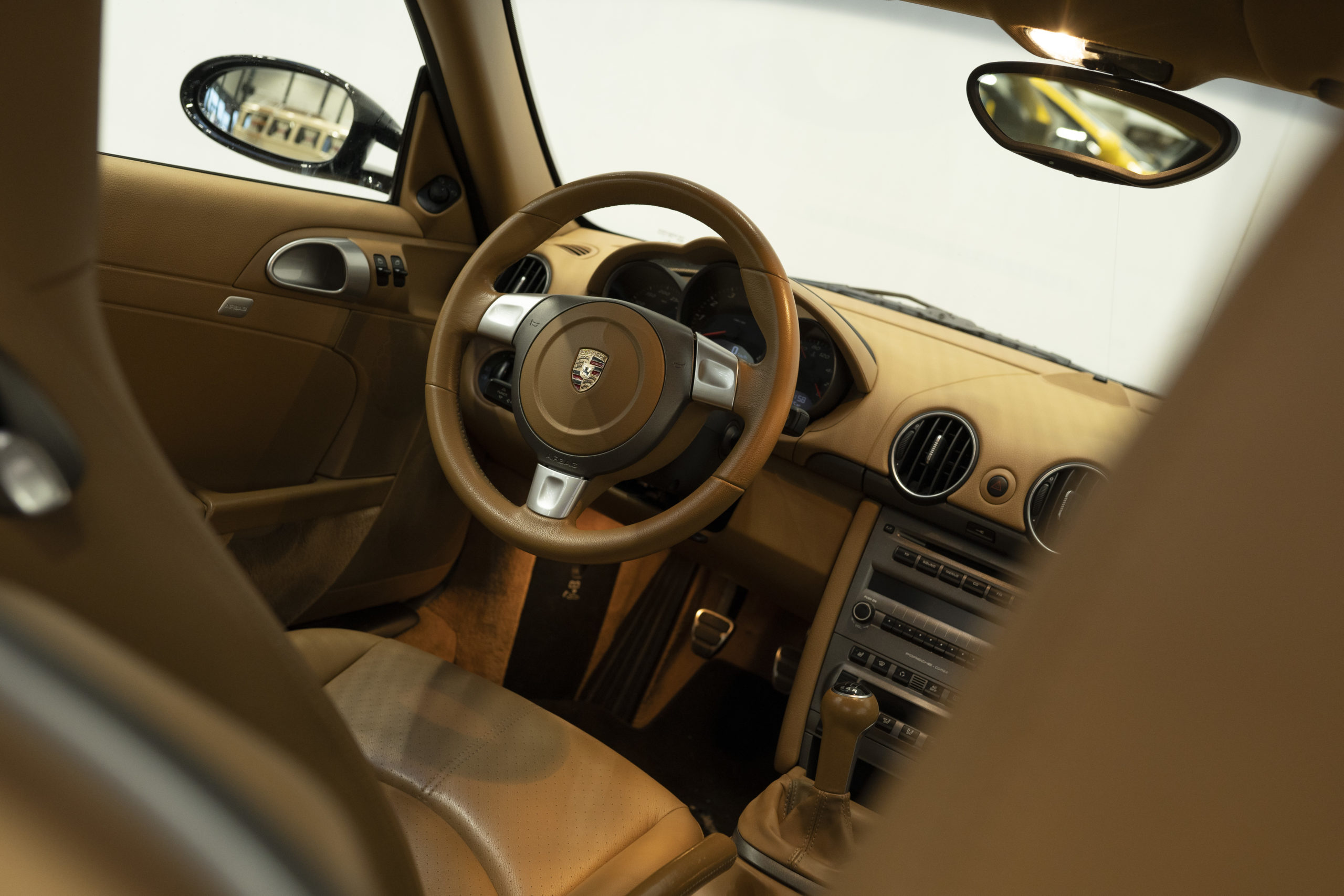 Cayman. Der fahraktivere 911er. Sein Heckmittelmotor-Konzept beschert ihm eine perfekte Gewichtsbalance, er folgt seiner feinen Lenkung ausgesprochen willig und eignet sich nicht nur fürs Wochenende, sondern für den langen Urlaub zu zweit. Die tolle Balance, gepaart mit sehr drehfreudigem Motor und geringem Gewicht sorgt für Fahrspaß! Unser sehr gepflegtes Exemplar hat neben der schönen Farbkombination noch ein paar weitere Details, um das Gesamtbild zu perfektionieren: 19“ Felgen vom Cayman S, eine dezente Tieferlegung um 35mm von H&R, 18mm Distanzscheiben an der Hinterachse und moderne LED Heckscheinwerfer (Originale vorhanden). Alle Umbauten sind selbstverständlich eingetragen.